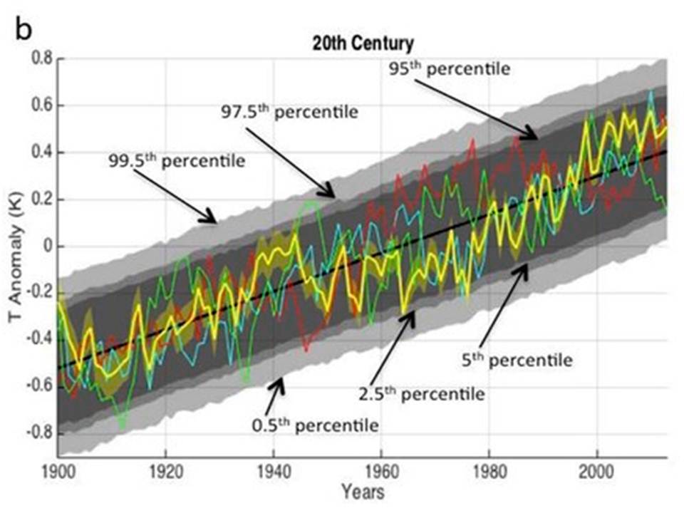 We recently published a study in Scientific Reports titled “Comparing the model-simulated global warming signal to observations using empirical estimates of unforced noise”. Our study seemed to generated a lot of interest and we have received many inquires regarding its findings. We were pleased with some of coverage of our study (e.g., here) but we were disappointed that some outlets published particularly misleading articles (e.g, here, here, and here). Because there appears to be some confusion regarding our study’s findings, we would like to use this forum to clarify some points.