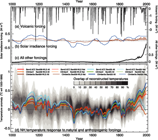 figure 2 – Top: Major causes of Northern Hemisphere temperature changes over the last 1000 years.