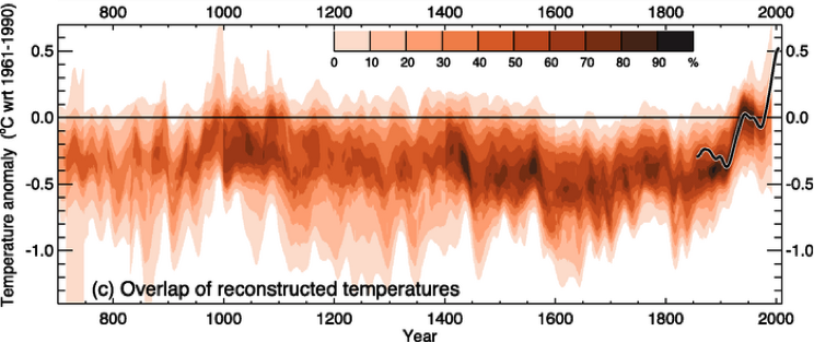 figure 1 – Reconstruction of Northern Hemisphere temperatures over the last 1300 years